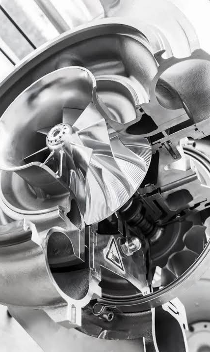 A turbocharger consists of a compressor wheel and a turbine wheel coupled together by a solid shaft. The turbine wheel extracts energy from the exhaust gas and uses it to drive the compressor wheel. Subsequently, the compressed air is pushed out, allowing the engine to burn more fuel and ultimately produce more power.